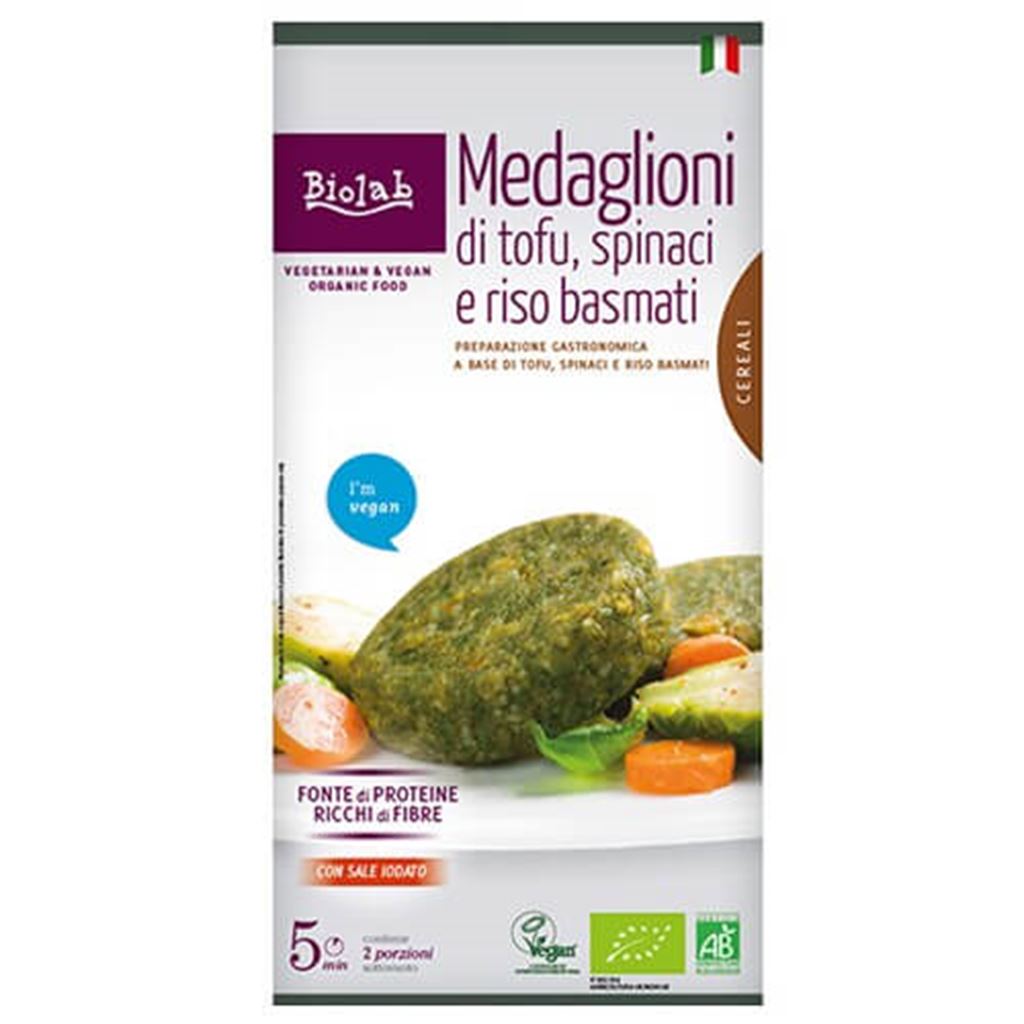 Vegan βιολογικά μενταγιόν από τόφου, σπανάκι και ρύζι μπασμάτι.